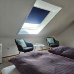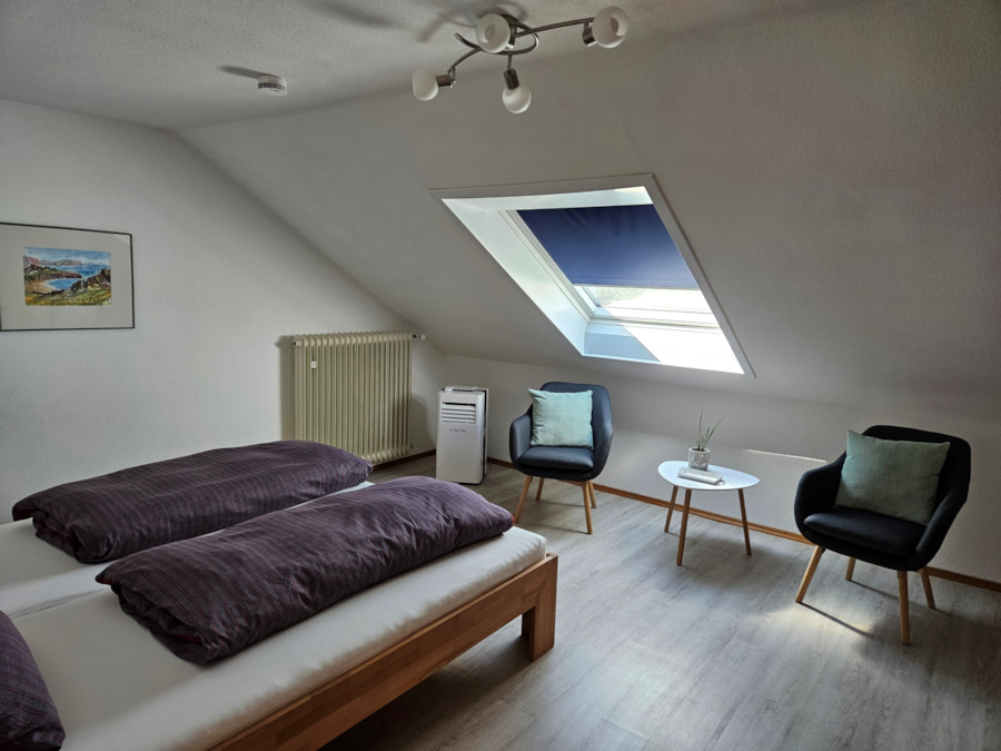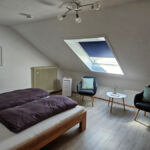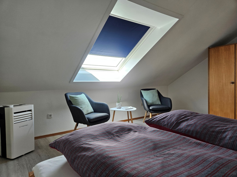 Mit 3 Zimmer und 74 qm Wohnfläche bietet unsere gepflegte Dachgeschosswohnung in einem Zweifamilienhaus großzügig Platz für bis zu 4 Personen. Jeweils 2 Personen finden dabei Platz in den beiden separaten Schlafzimmern.